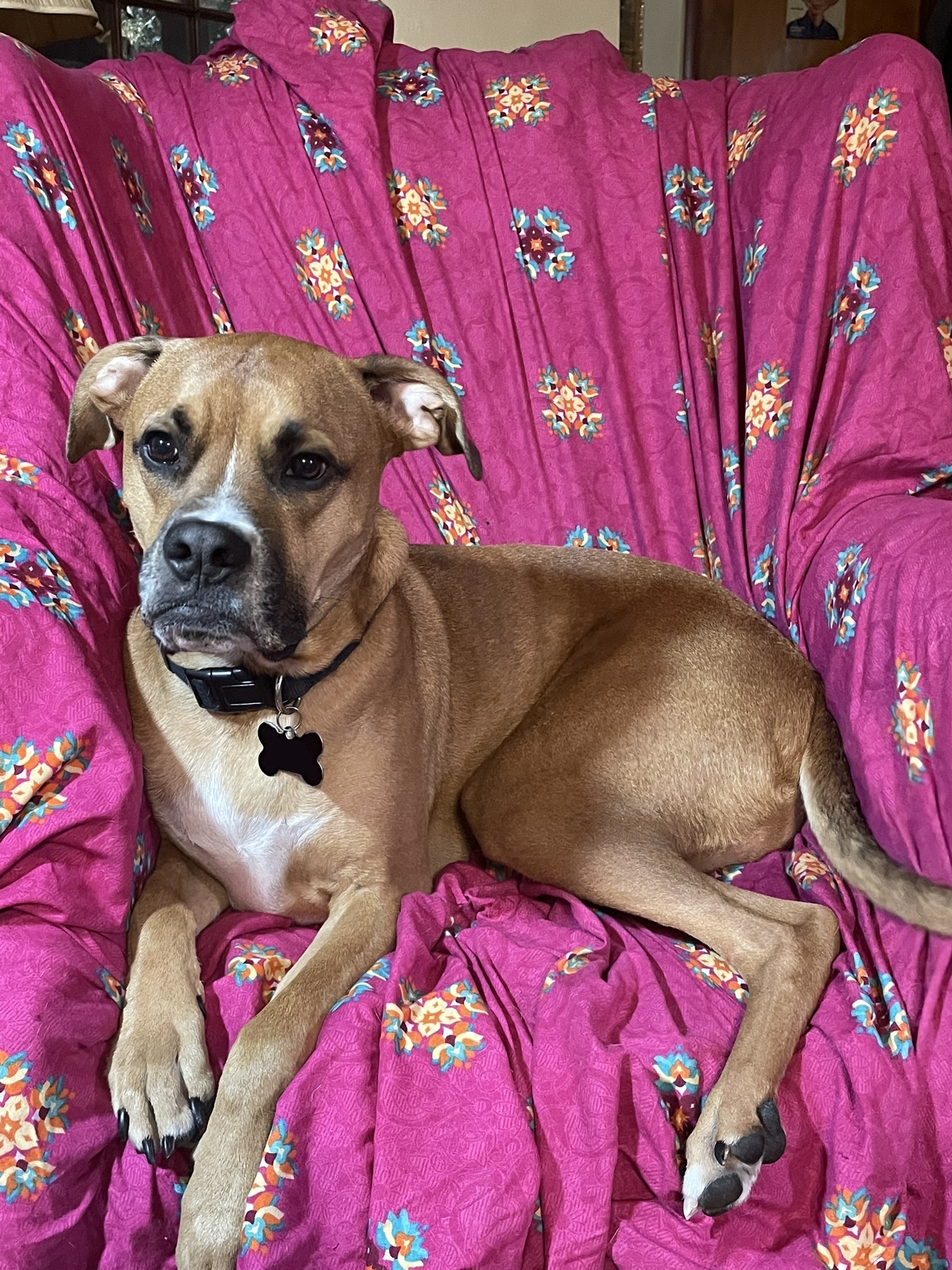 He's a big old baby and loves to go hiking, walking and car riding. He also licks way too much.